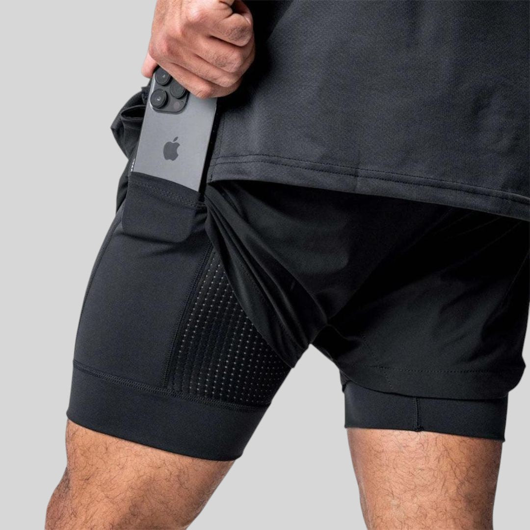 Com tecnologia de respirabilidade avançada, mantém o corpo fresco mesmo nas atividades mais intensas. O design de camada dupla inclui um short interno de suporte que garante estabilidade, flexibilidade e melhor circulação. Para completar, os bolsos laterais funcionais e o bolso interno para celular permitem praticidade e segurança no seu dia a dia esportivo.